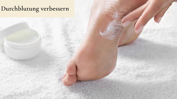 Fußpflege im Winter: Wärmende Fußcremes mit Inhaltsstoffen wie Ingwerextrakt, Zimt oder ätherischen Ölen regen die Durchblutung an